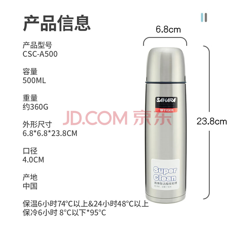 商品相册:虎牌(TIGER)保温杯按压式中栓出水不锈钢男女水杯CSC-A500-FF 500ML第