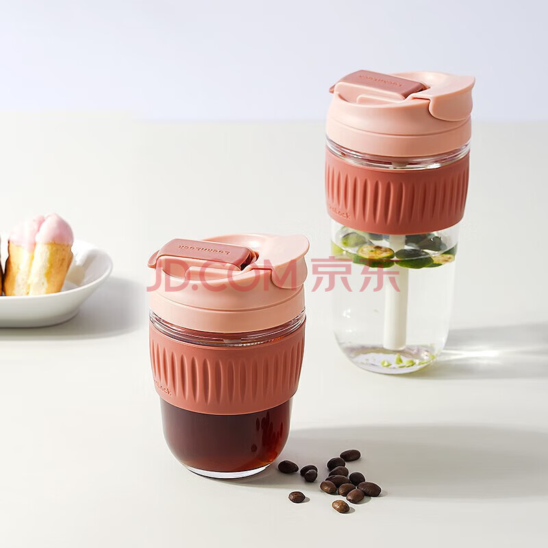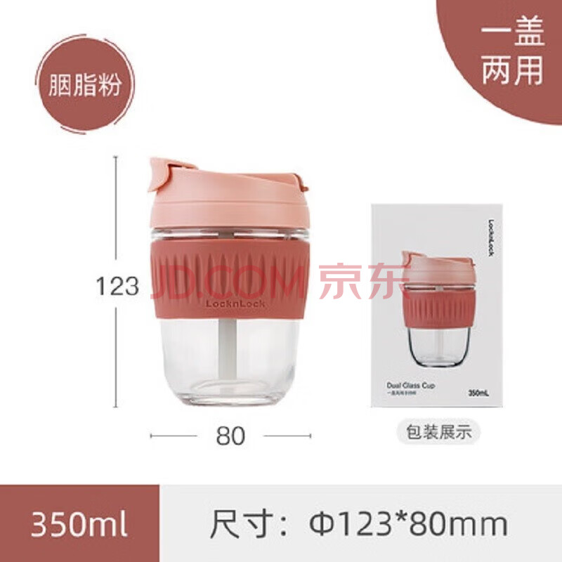 商品相册:乐扣乐扣(LOCK&LOCK)咖啡杯耐热玻璃水杯子男女学生便携式双饮吸管杯随手杯350ML粉色第
