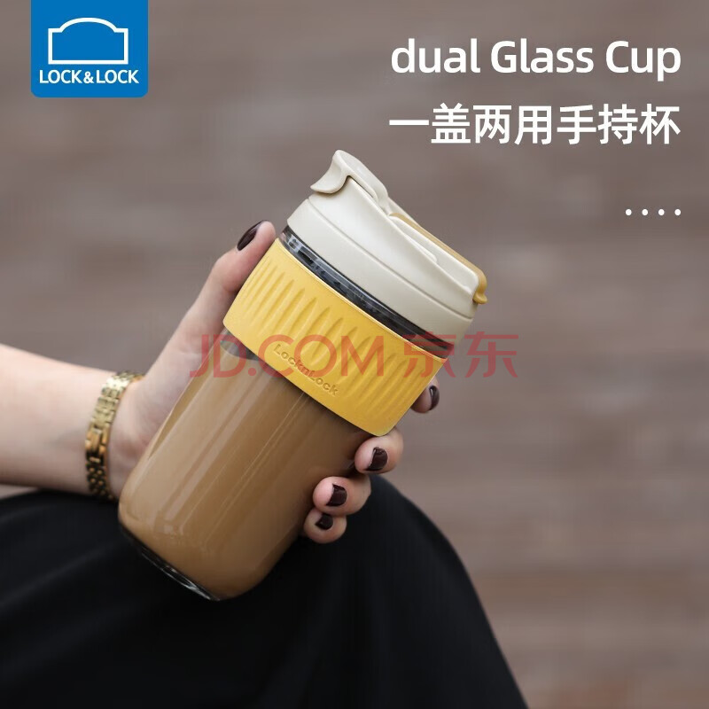 商品相册:乐扣乐扣(LOCK&LOCK)咖啡杯耐热玻璃水杯子男女学生便携式双饮吸管杯随手杯350ML绿色第
