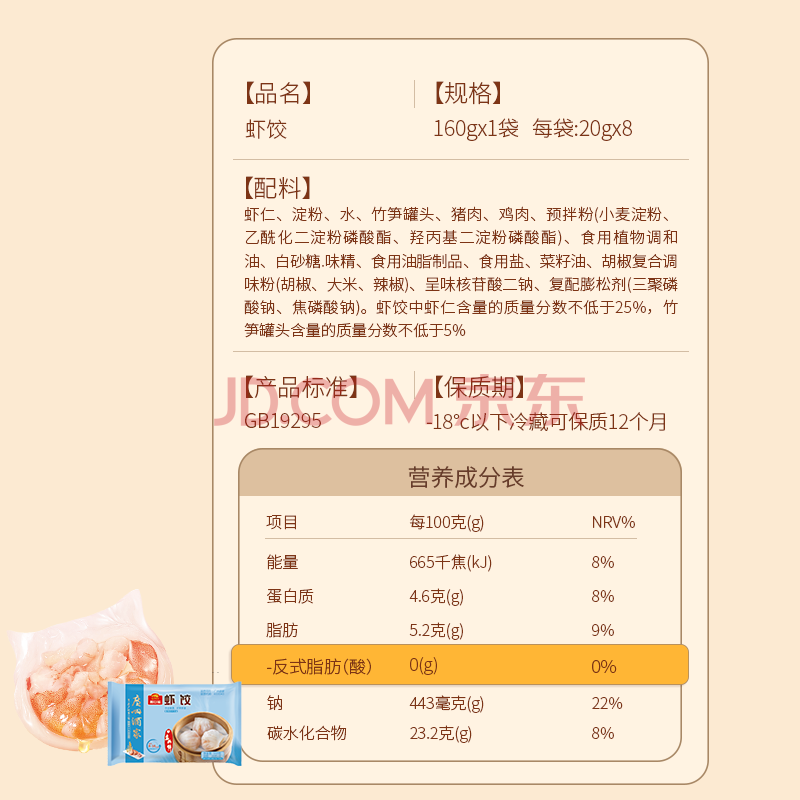 商品相册:广州酒家虾饺160g 8只 早餐半成品广式早茶点心生鲜速冻面点食品开学季第