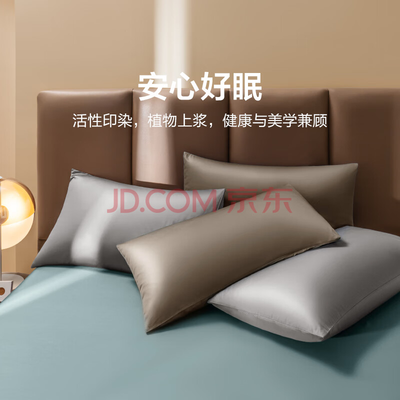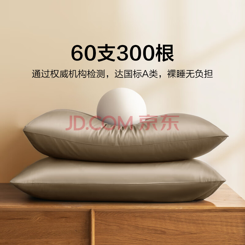 商品相册:京东京造 60支长绒棉轻奢贡缎枕套 100%纯棉枕头套 48x74cm 一对装 香槟色第