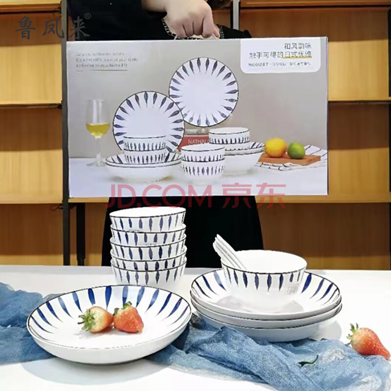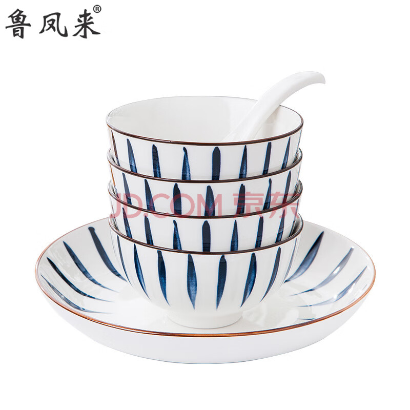 商品相册:鲁凤来. 16头陶瓷餐具 简约家用餐具套装(6碗6勺4盘)日式兰草汤碗盘套装第