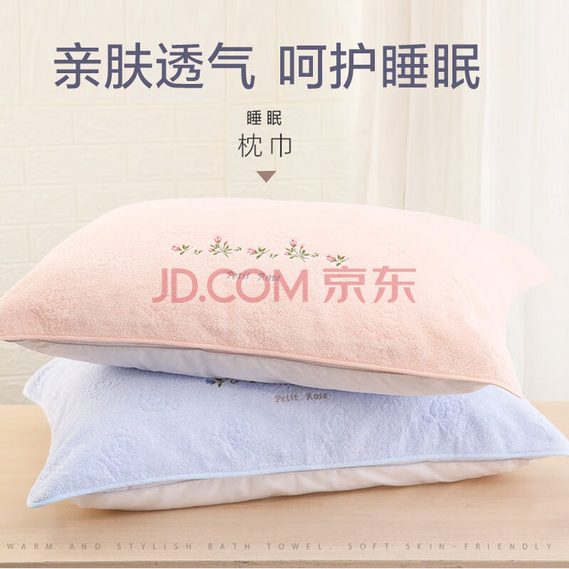 商品相册:金号 素色绣花 纯棉枕巾 柔软透气单人枕巾 2条装 蓝色 50*80cm第1张/共6