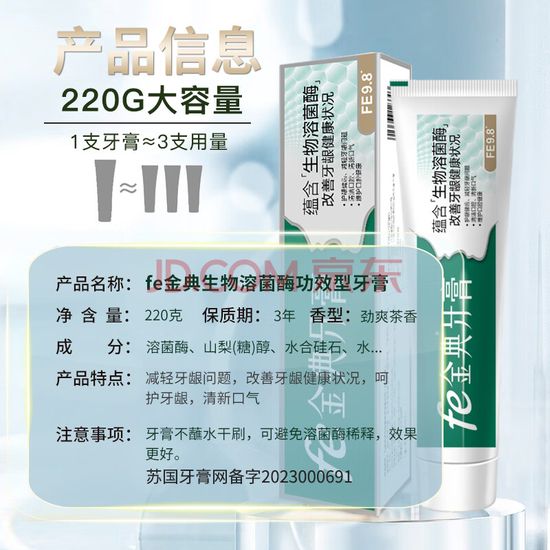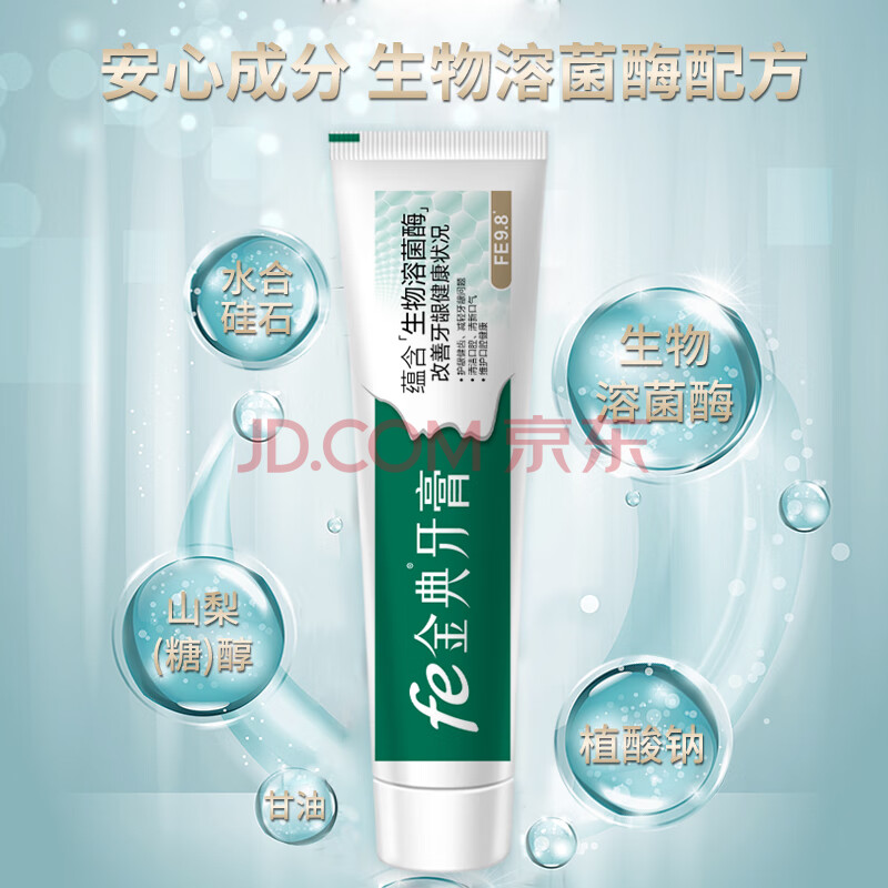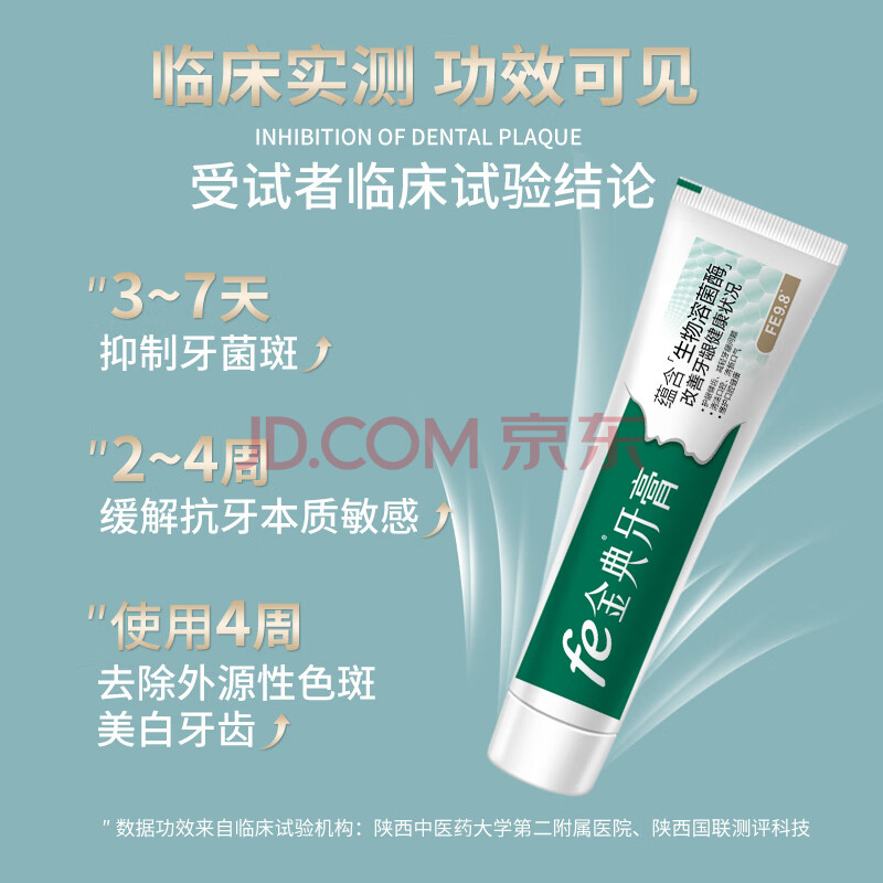 商品相册:fe金典牙膏改善牙龈健康清火抗敏清新口气茶香生物酶9.8抑制牙菌斑220g第