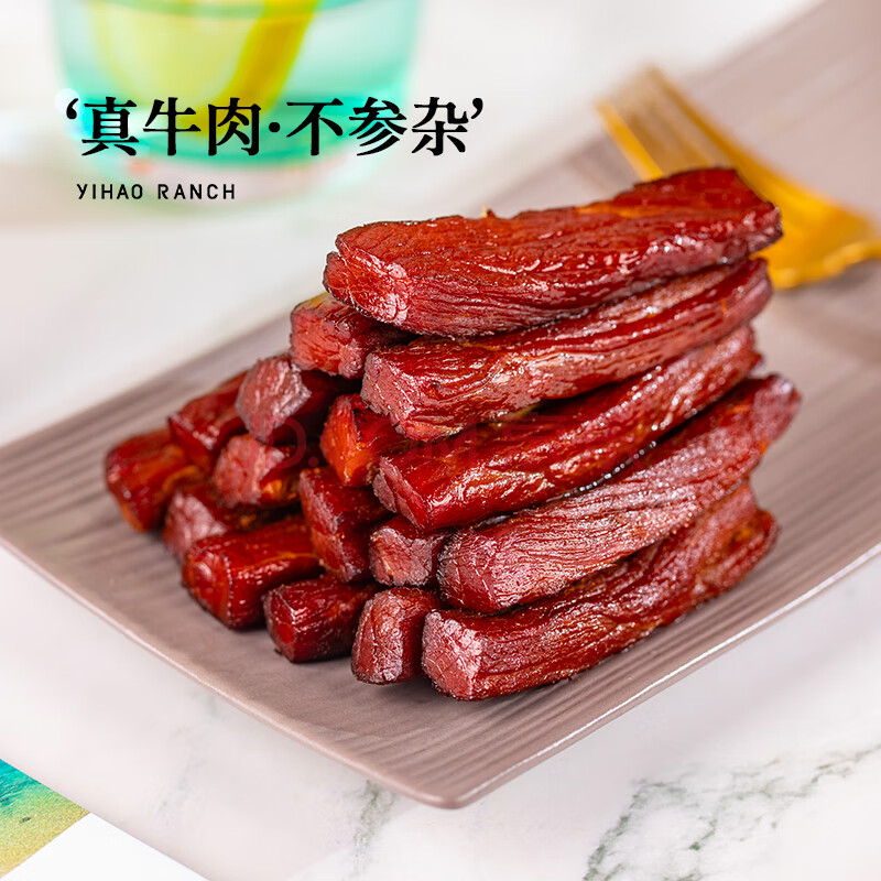 商品相册:一号牧场 手撕风干牛肉干 原味 300g 袋装 约6成风干 休闲零食 稍软第