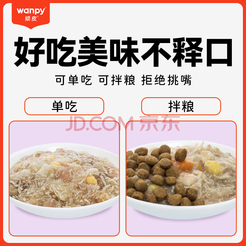 商品相册:顽皮活力营养狗湿粮狗零食犬用牛蹄筋&鸡肉鲜封包80g*10袋 整盒装第
