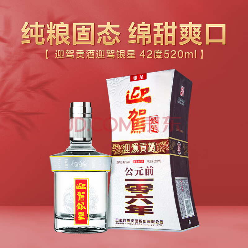 商品相册:迎驾贡酒银星 浓香型 白酒 42度 520ml 单瓶装 送礼第