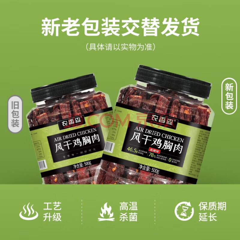 商品相册:农香森风干鸡胸肉干500g麻辣鸡肉干休闲解馋小零食减低耐嚼卡脂即食第