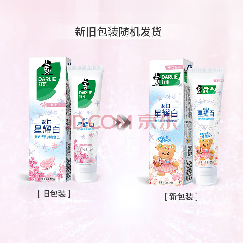 商品相册:好来(DARLIE)(原黑人)星耀白樱花香牙膏120g美白牙齿去黄联名黄油小熊包装随机第