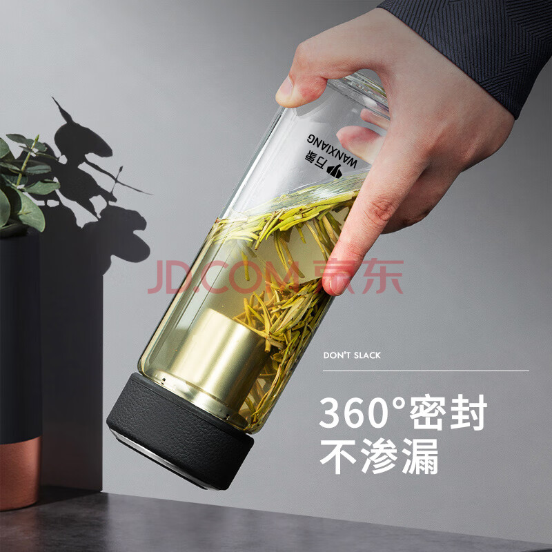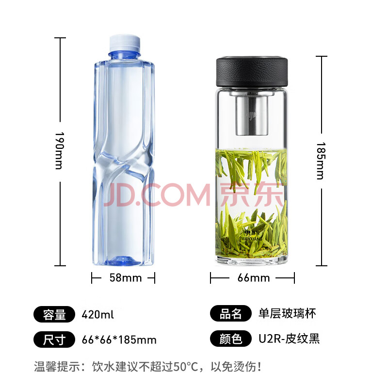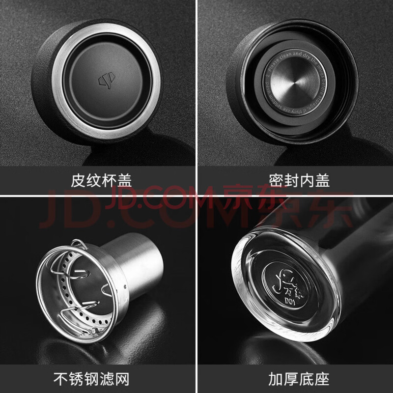 商品相册:万象(WANXIANG)玻璃杯经典皮纹U2R商务办公杯高硼硅泡茶杯420ML家用带滤网水杯第