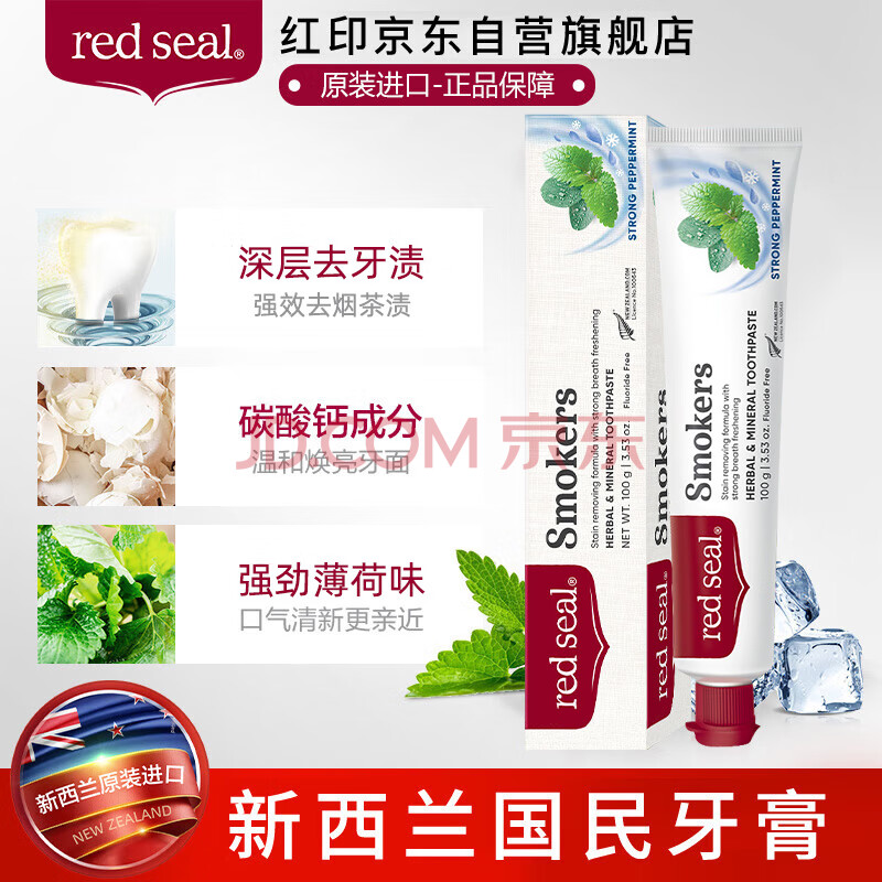 商品相册:红印(Red seal)新西兰进口烟民薄荷牙膏100g*2支装 无氟烟民牙膏双重薄荷味第