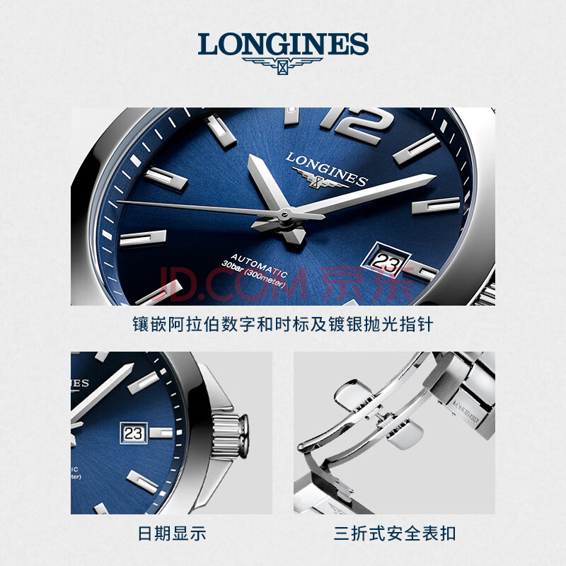 商品相册:浪琴(LONGINES)瑞士手表 康卡斯系列 男士钢带机械表 L37774996第
