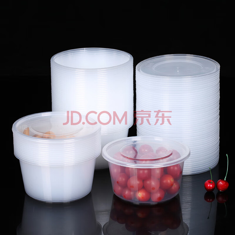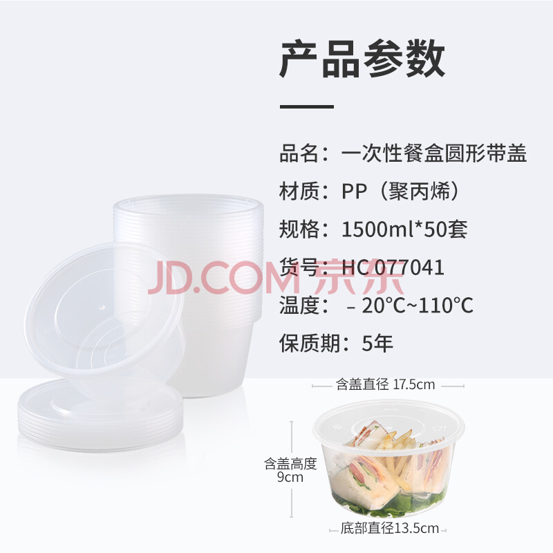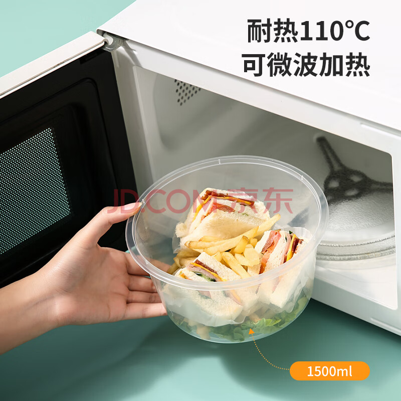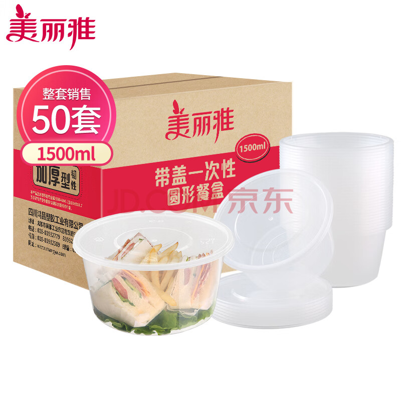 商品相册:美丽雅一次性饭盒圆形1500ml*50套打包碗加厚餐盒带盖可微波大容量第