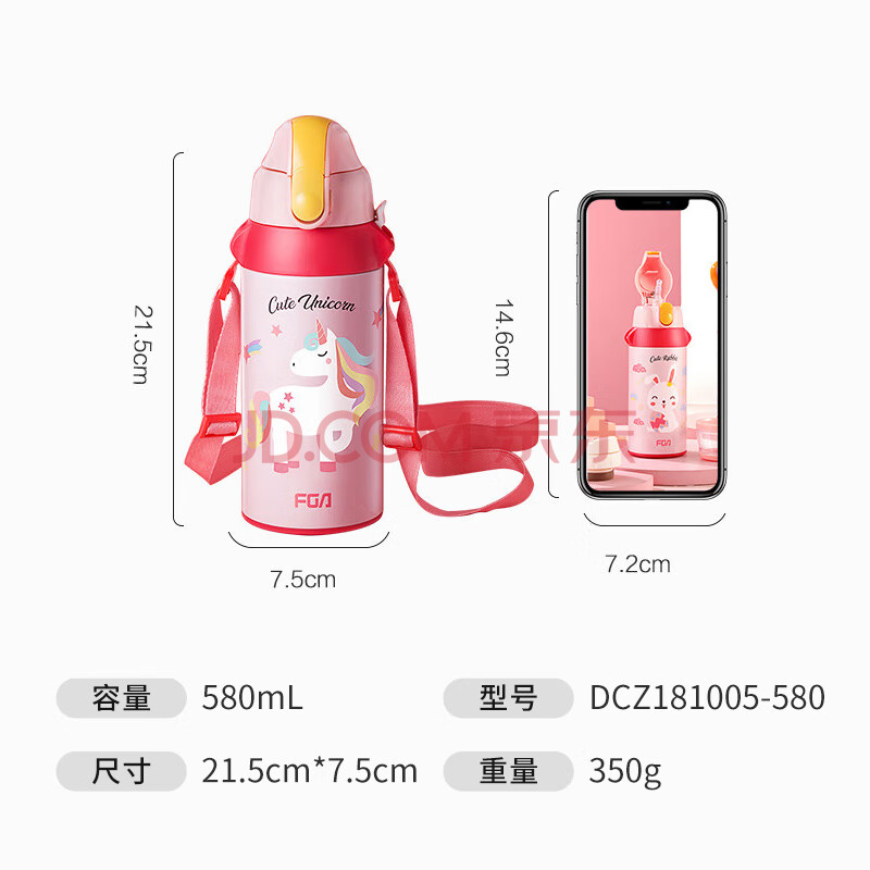 商品相册:FGA富光儿童保温杯316不锈钢男女学生吸管水杯子双饮大容量壶580ML第