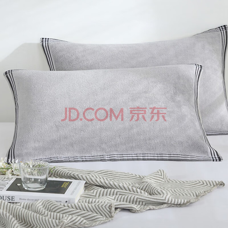商品相册:竹一百 竹纤维亲肤柔软吸汗枕巾一对情侣成人枕头巾两条装50*72cm灰色*2第