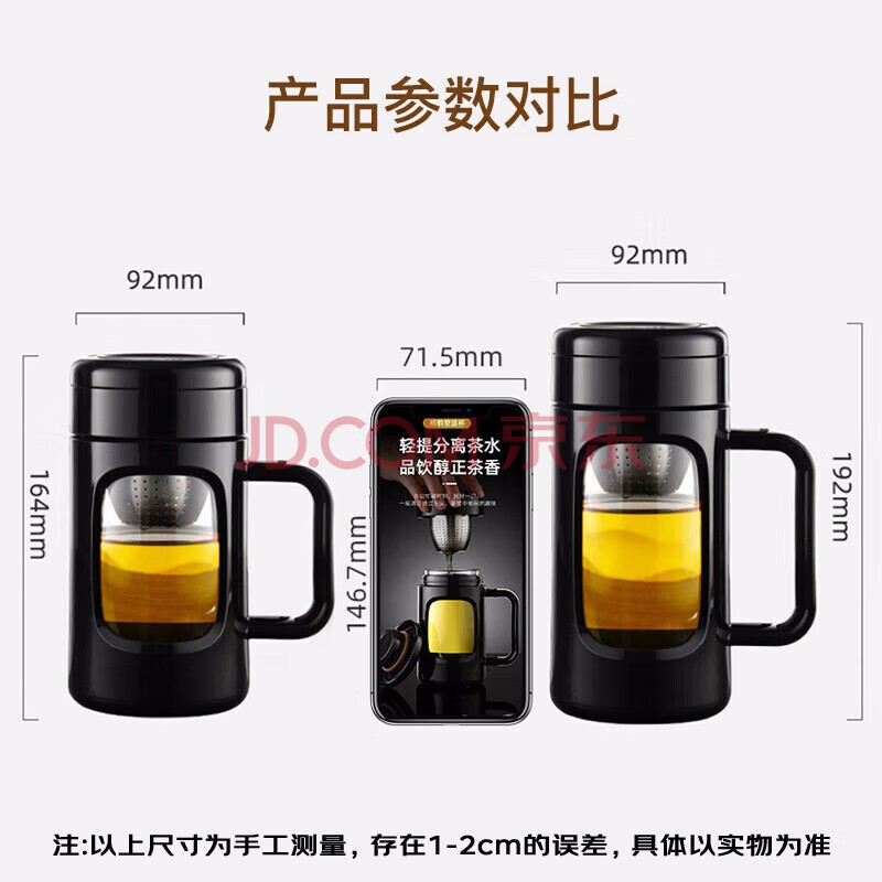 商品相册:富光玻璃杯男女办公双层大容量水杯带把茶水分离泡茶杯子带茶隔第