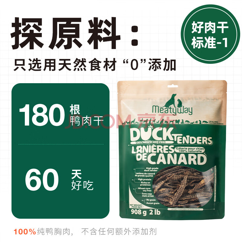 商品相册:Meatyway爵宴宠物狗狗零食鸭胸肉干 训犬大礼包鸭肉干908g第1张/共8