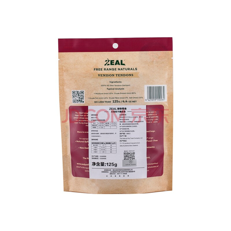 商品相册:ZEAL真致新西兰进口狗零食犬用鹿筋条125g磨牙洁齿肉干成犬宠物零食第