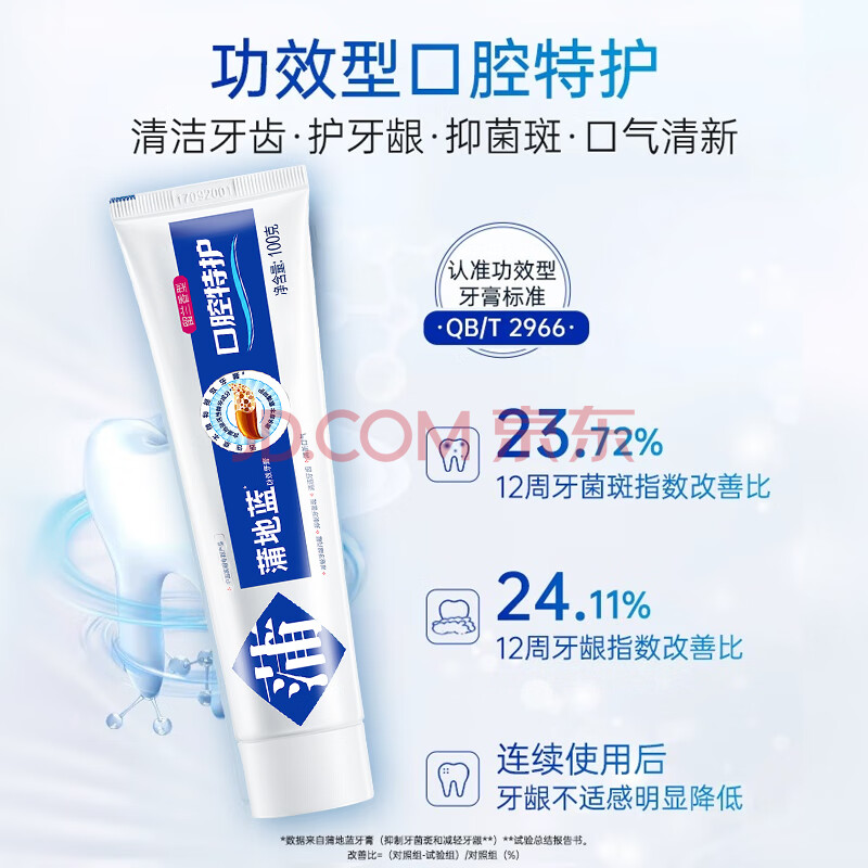 商品相册:蒲地蓝口腔特护功效牙膏草本护龈抗敏去牙菌斑红肿出血100g薄荷味不含氟第