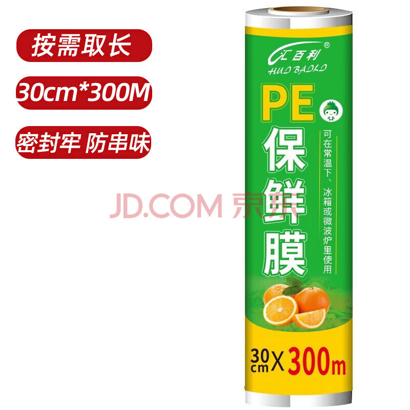 商品相册:汇百利一次性保鲜膜30cm*300M家用超市酒店厨房食堂食品保鲜用第