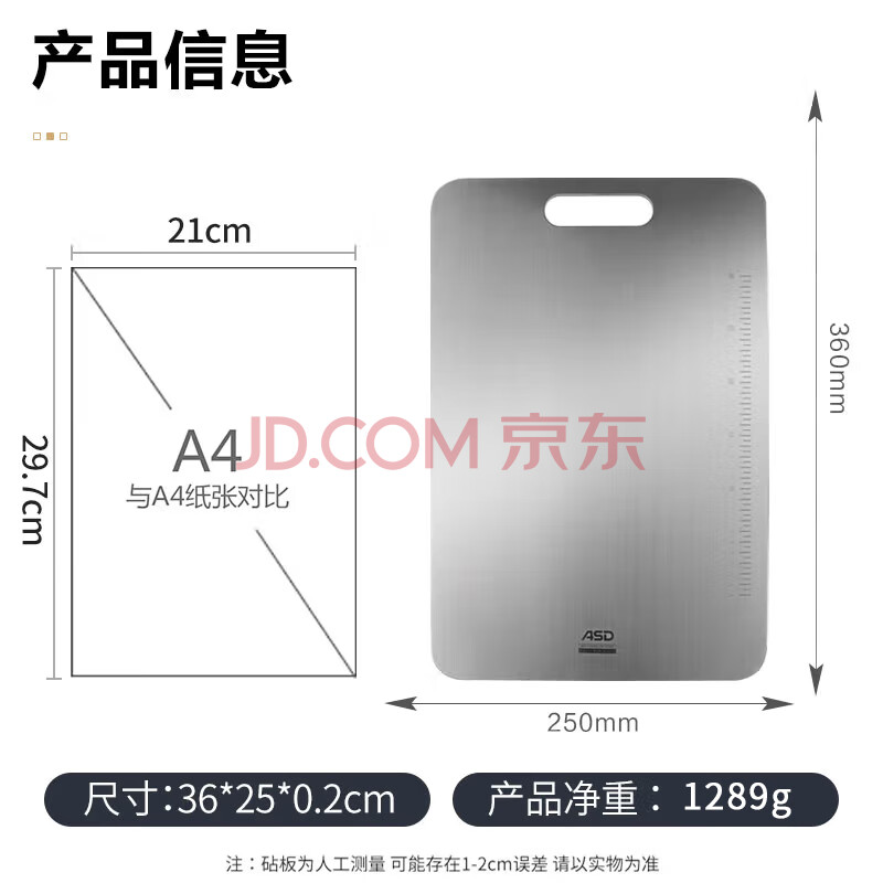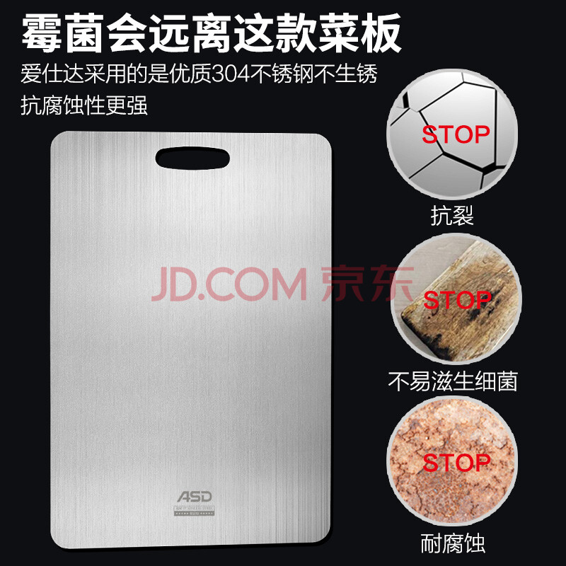 商品相册:爱仕达(ASD)菜板 304不锈钢抗菌防霉砧板切菜板辅食水果板GJ25C1WG中号第