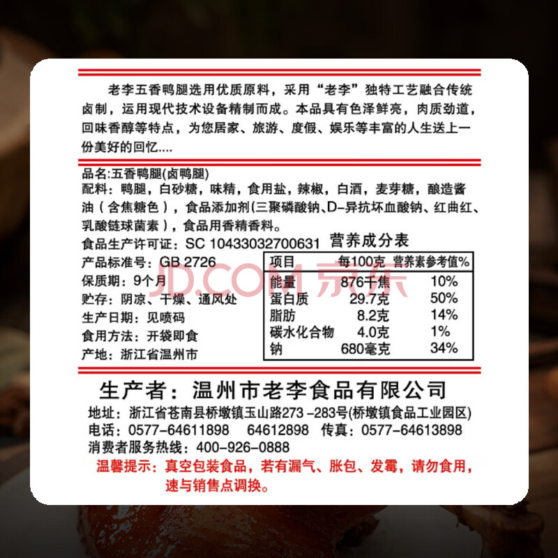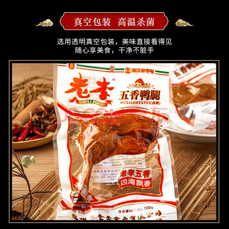 商品相册:老李食品 五香卤鸭腿100g/袋 真空包装 卤味鸭货小吃零食即食下酒菜第