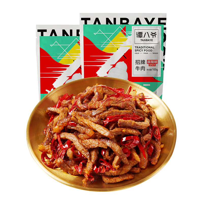 商品相册:谭八爷 麻辣牛肉干100g*2四川特产自贡冷吃牛肉零食即食熟食 源头直发第