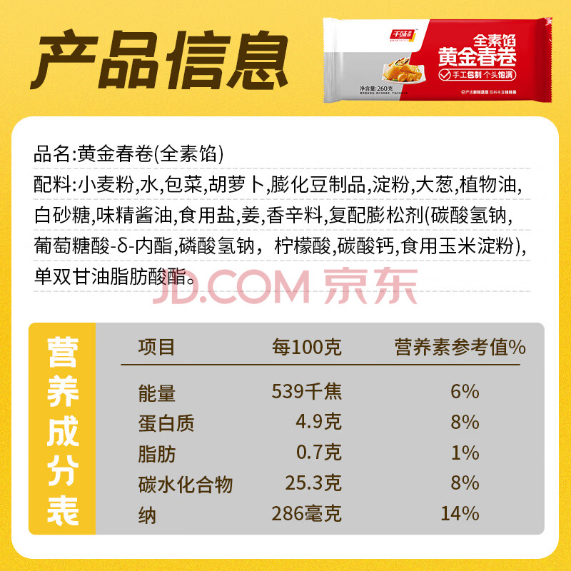 商品相册:千味央厨黄金春卷全素馅260g*4袋共64个早点早餐食品半成品油炸小食主食第