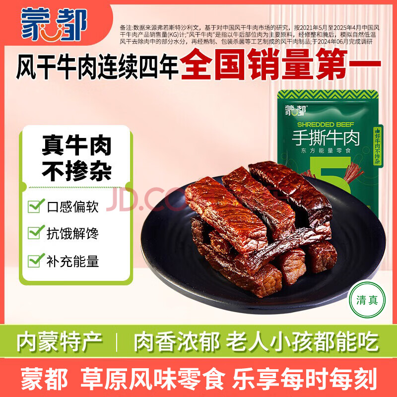 商品相册:蒙都 手撕牛肉干 原味250g 约五成风干 袋装 休闲零食 肉干肉脯 清真第