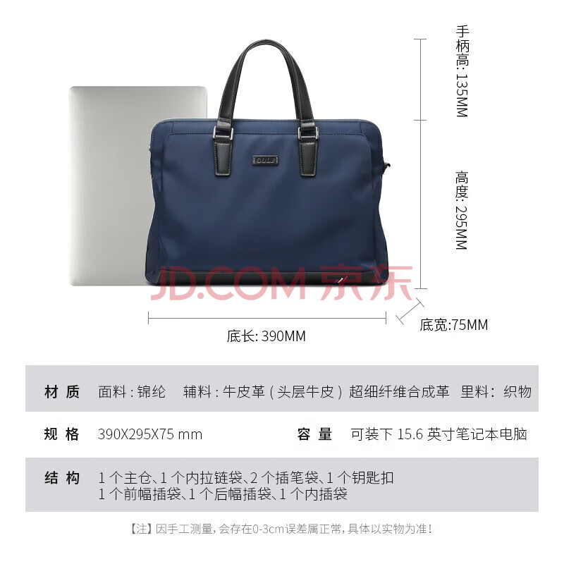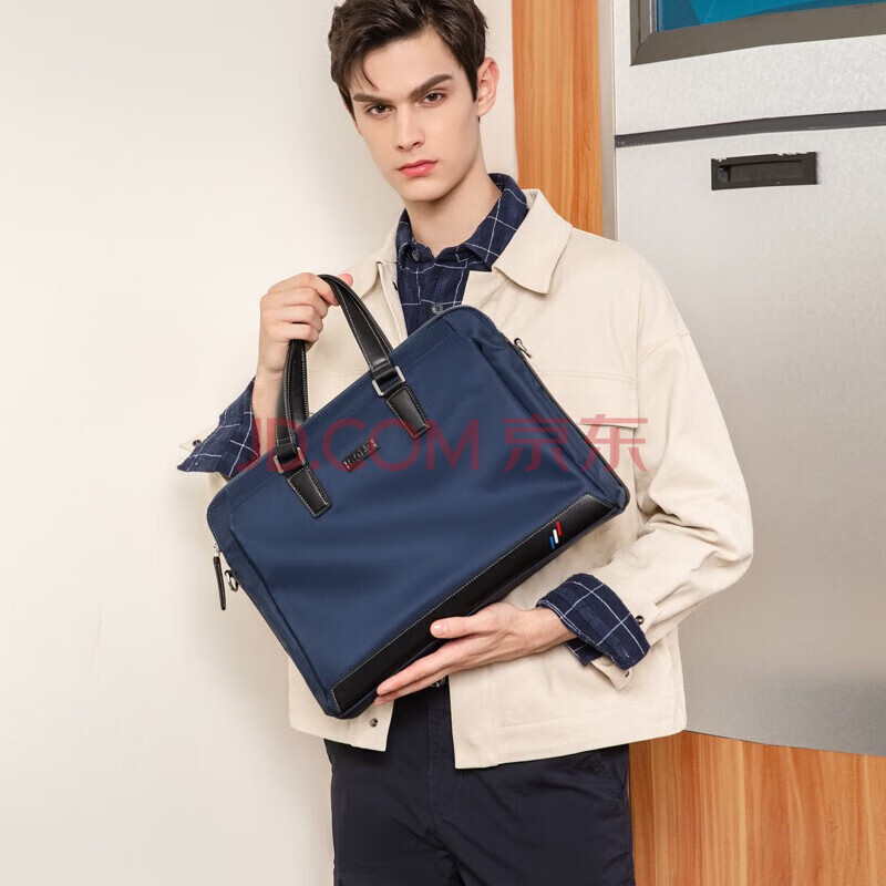 商品相册:高尔夫GOLF商务公文包男时尚锦纶防泼水大容量手提包多功能横款单肩斜挎休闲男包5I568364J蓝配黑第
