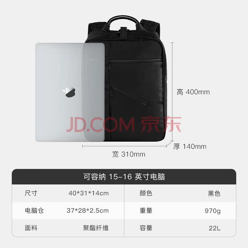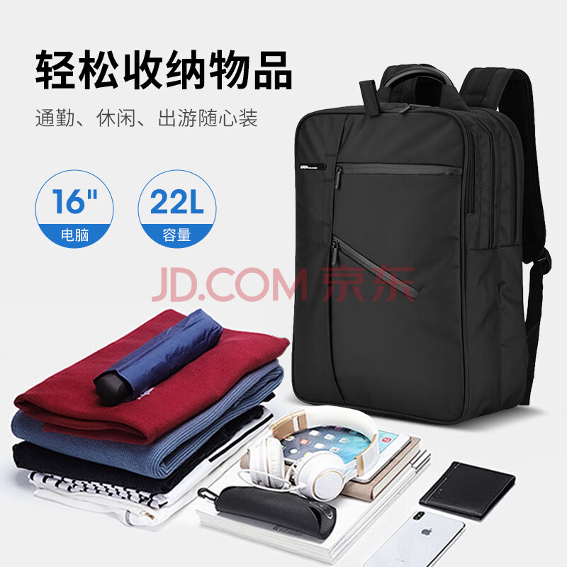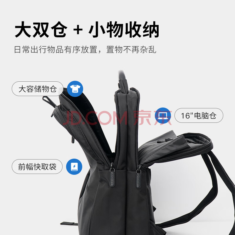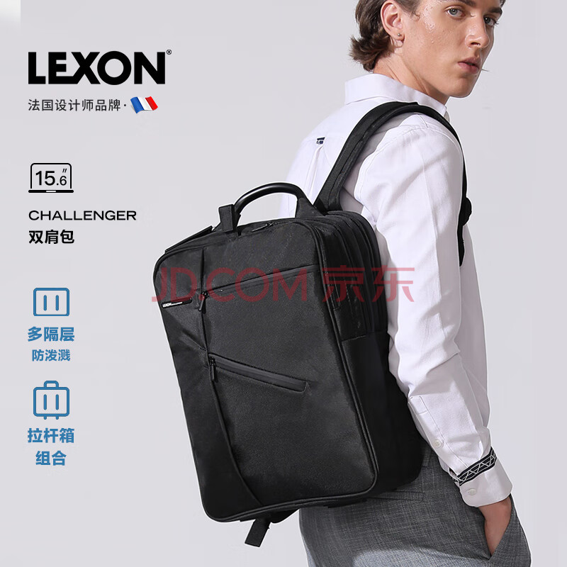 商品相册:乐上(LEXON)双肩包电脑包15.6/16英寸笔记本背包男双隔层书包旅行防泼水黑色第