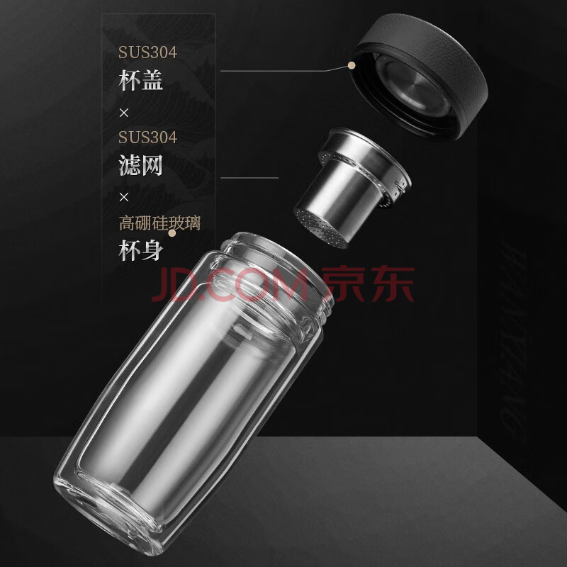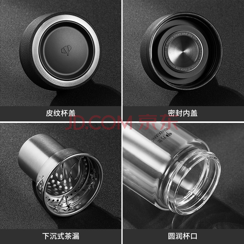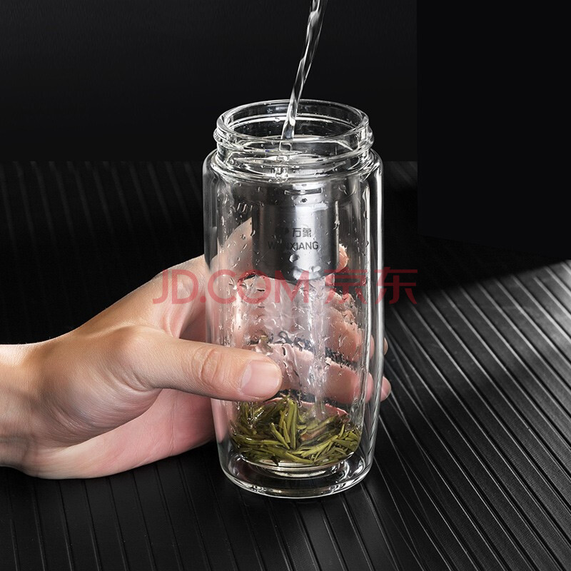商品相册:万象(WANXIANG)双层玻璃杯送男友便携茶水杯V17L商务办公大容量360ML带滤网水杯第