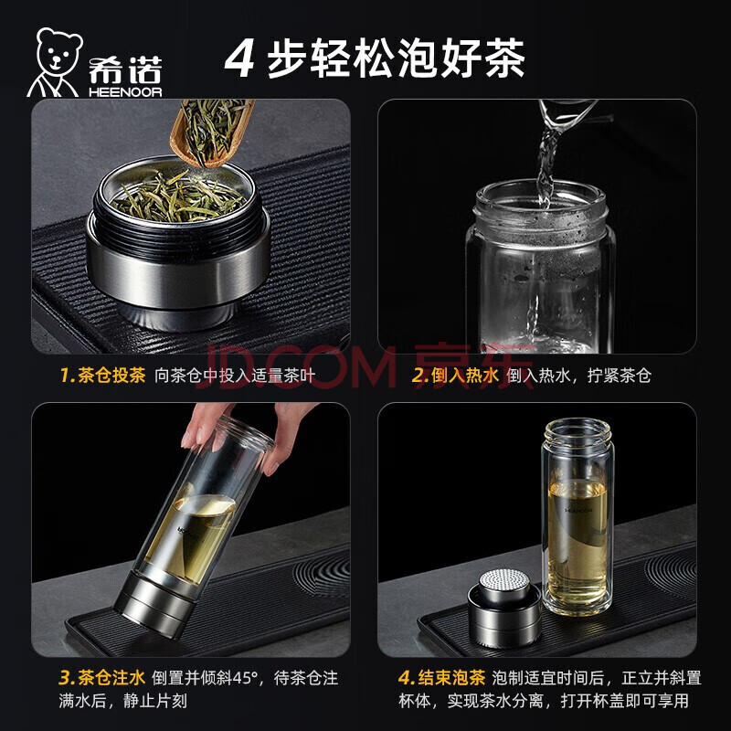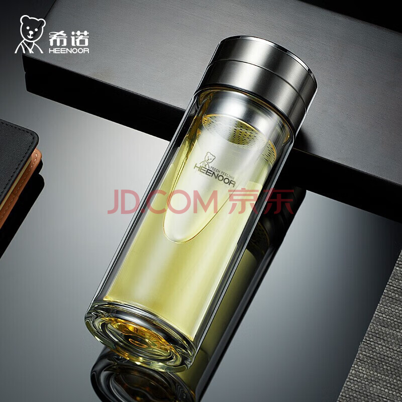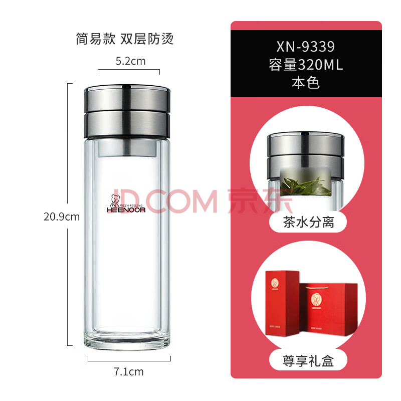 商品相册:希诺双层玻璃杯男茶水分离杯高档泡茶杯子车载水杯XN-9339本色 340mL第