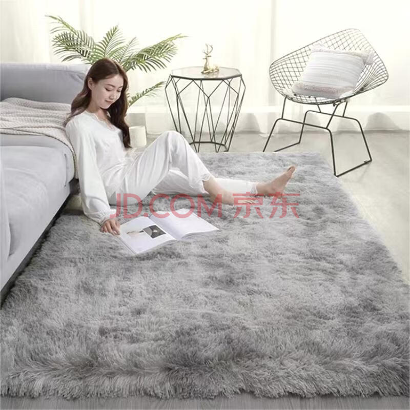 商品相册:梦蜓长绒丝毛客厅地毯茶几卧室飘窗床边毯垫 简约银灰200*250cm第