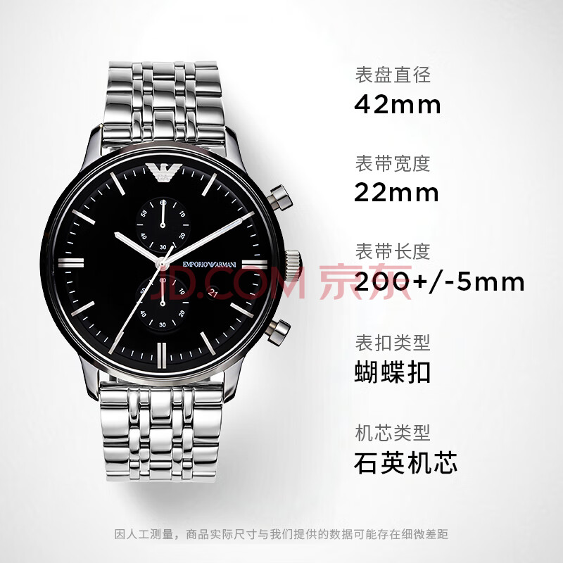 商品相册:EMPORIO ARMANI阿玛尼手表男士简约商务系列三针双眼石英表生日礼物送男友AR0389第