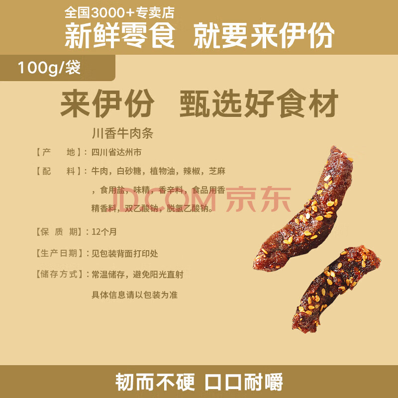 商品相册:来伊份川香牛肉条麻辣味100g即食牛肉干肉干肉脯夜宵解馋小吃休闲零食第