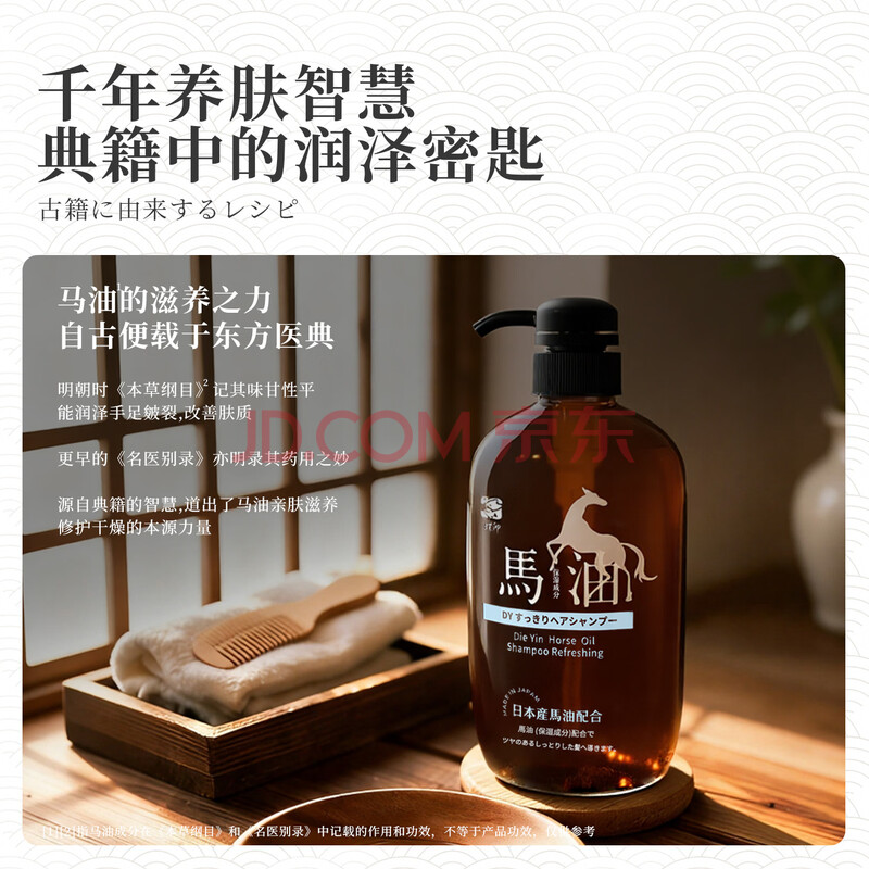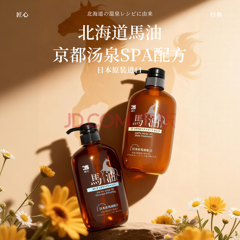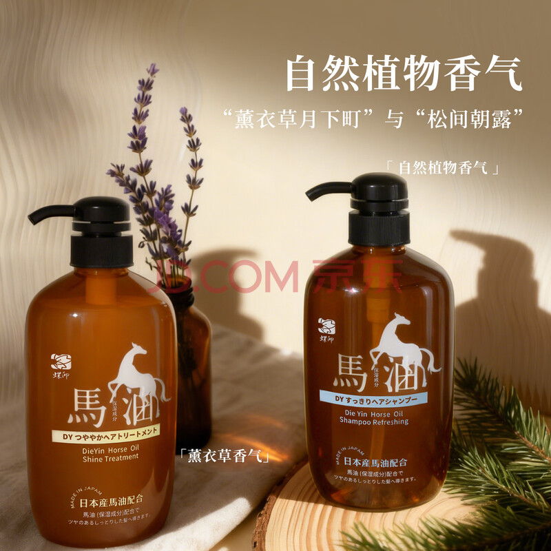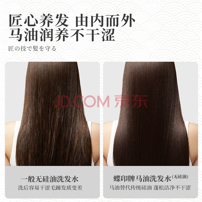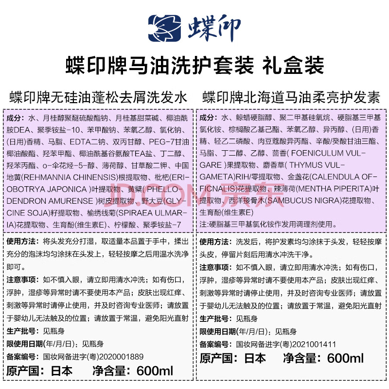 商品相册:蝶印 日本进口 马油洗护套装(蓬松洗发水600ml+护发素600ml)礼盒装第
