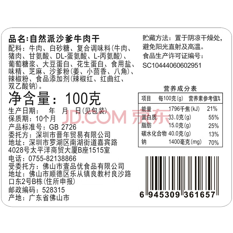 商品相册:自然派沙爹牛肉干即食风干 牛肉脯广东老字号特产年货休闲零食第