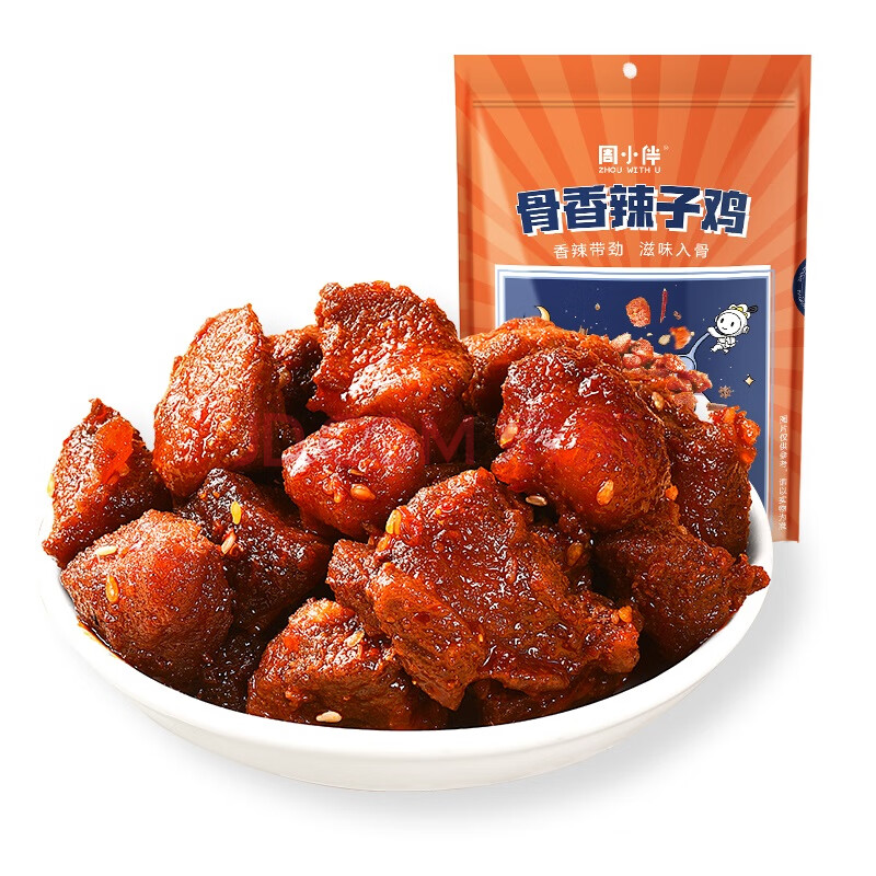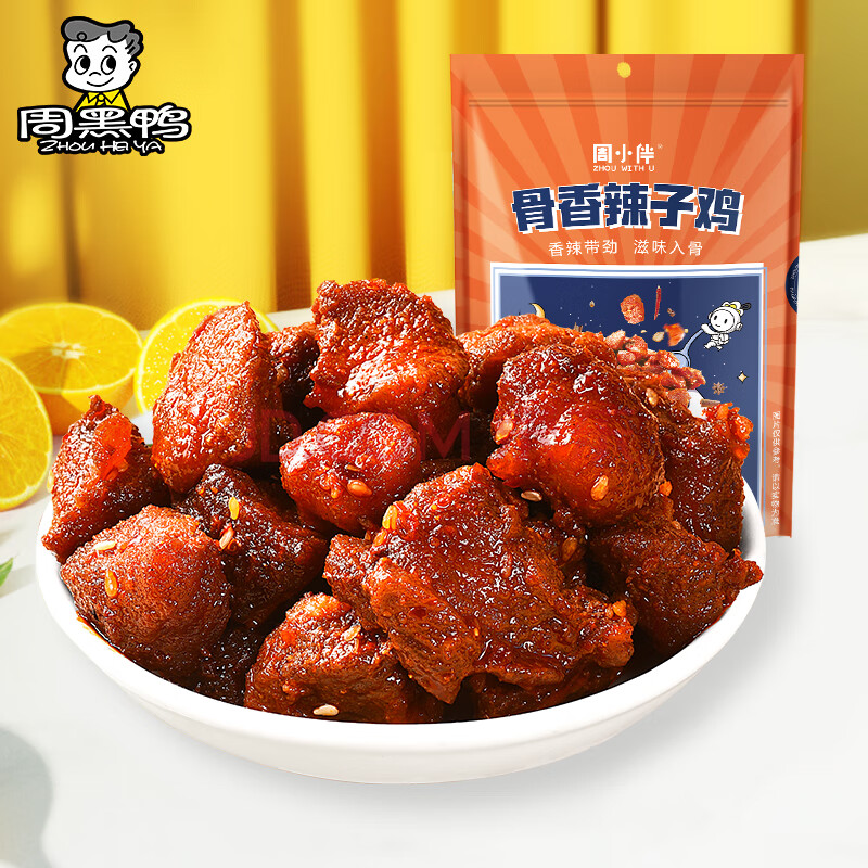 商品相册:周黑鸭 周小伴 香辣味骨香辣子鸡 休闲零食麻辣鸡块 独立小包装100g第