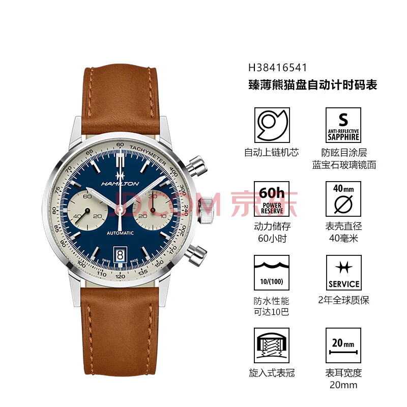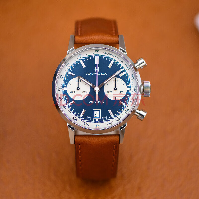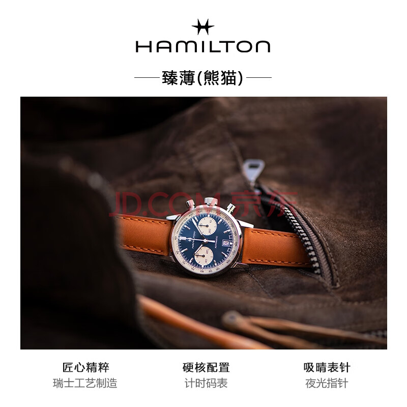 商品相册:汉米尔顿(Hamilton)经典臻薄熊猫盘计时码表40蓝盘皮带男士腕表瑞士自动机械表第