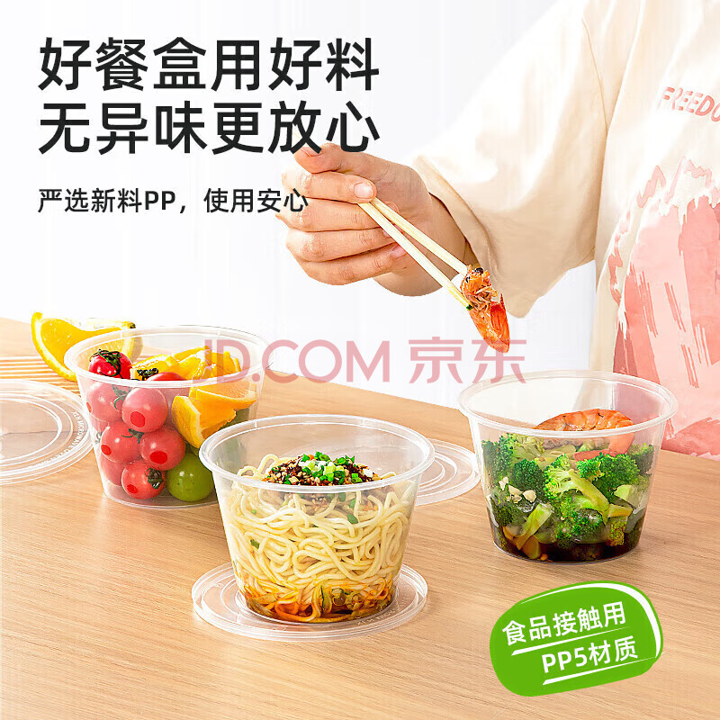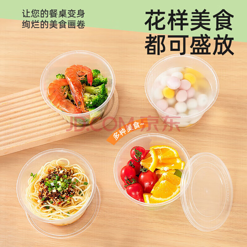 商品相册:特美居(temeiju)一次性饭盒圆形透明塑料快餐盒加厚带盖打包盒汤碗50套装500型第