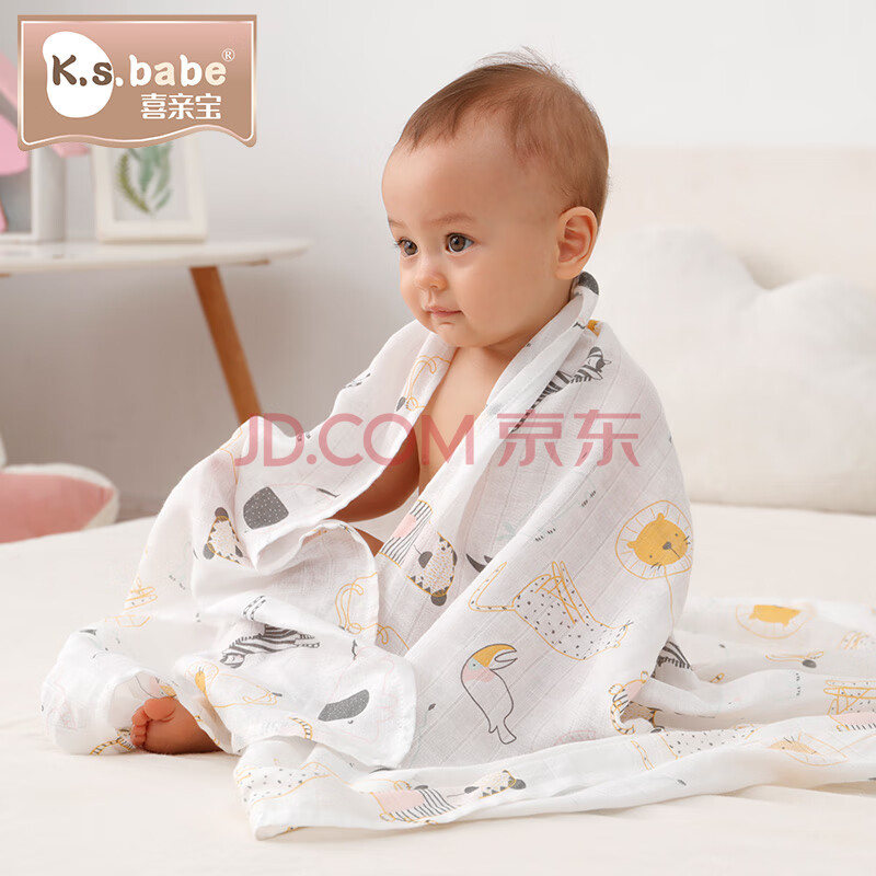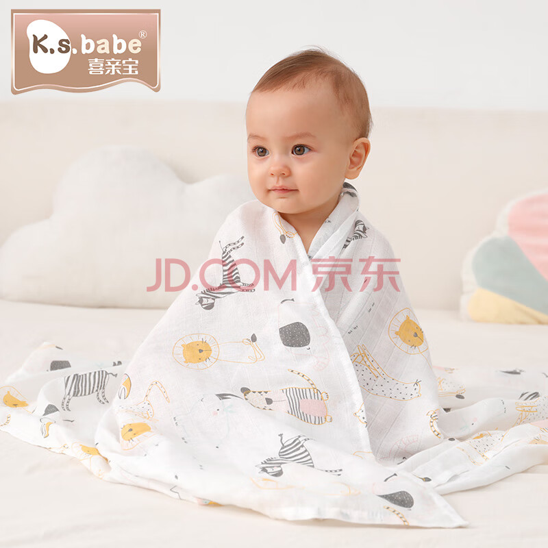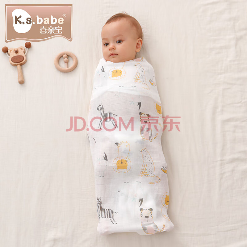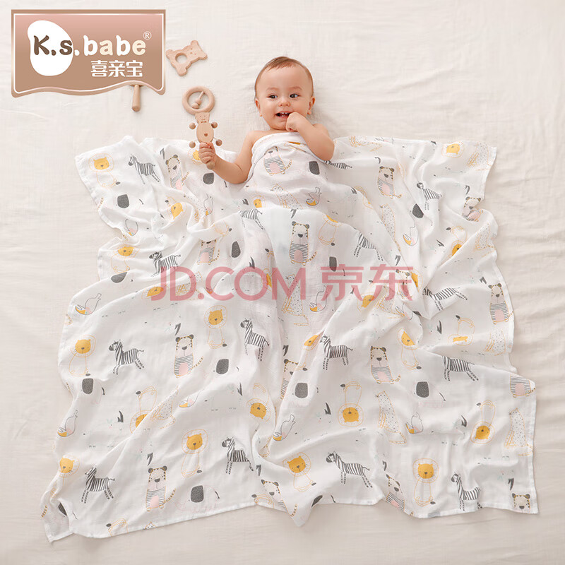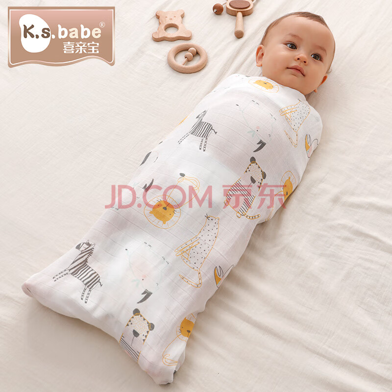 商品相册:喜亲宝婴儿包巾襁褓巾防惊跳单层纱布盖毯浴巾115*130cm厘米动物乐园第