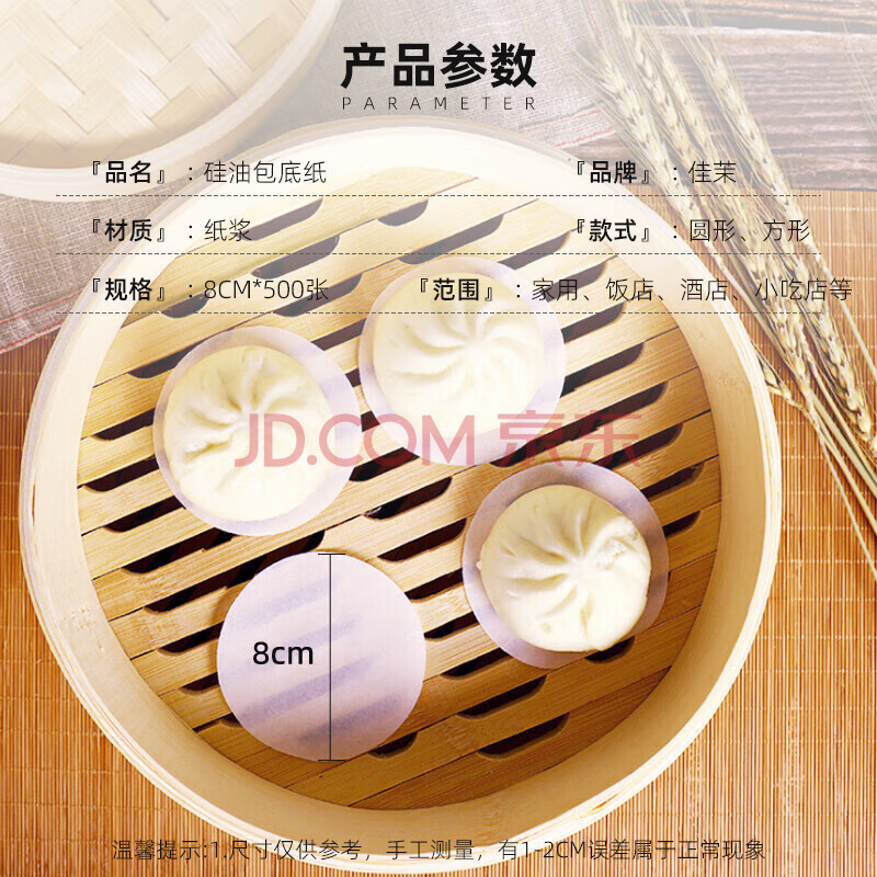 商品相册:佳茉 蒸笼纸500张 一次性不沾油纸家用馒头包子垫纸 蒸笼布圆形8cm第