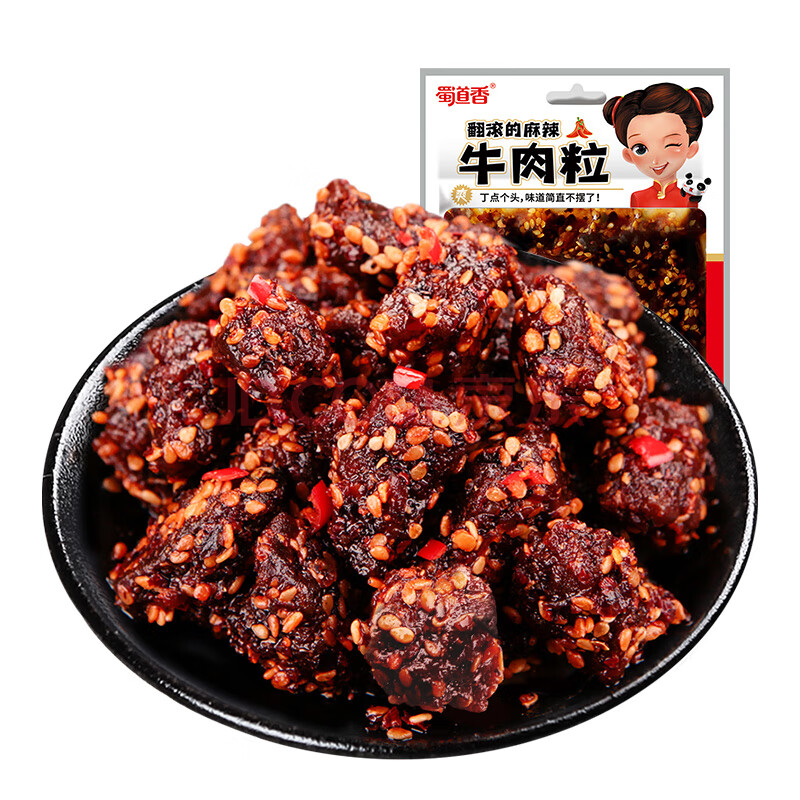 商品相册:蜀道香 牛肉粒 麻辣味50g 休闲办公室零食 牛肉干零食 特产肉脯第