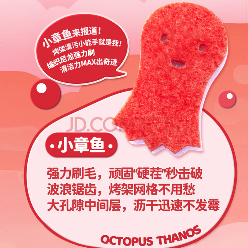 商品相册:旭包鲜 日本进口洁娃娃高效海绵(小章鱼)厨房家用洗碗餐具抹布第