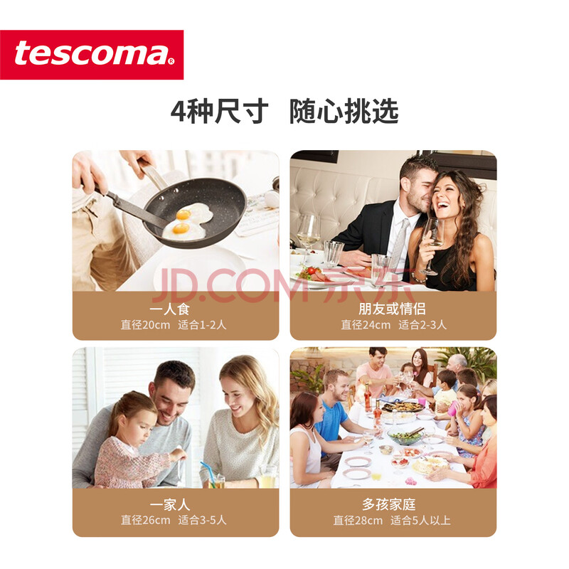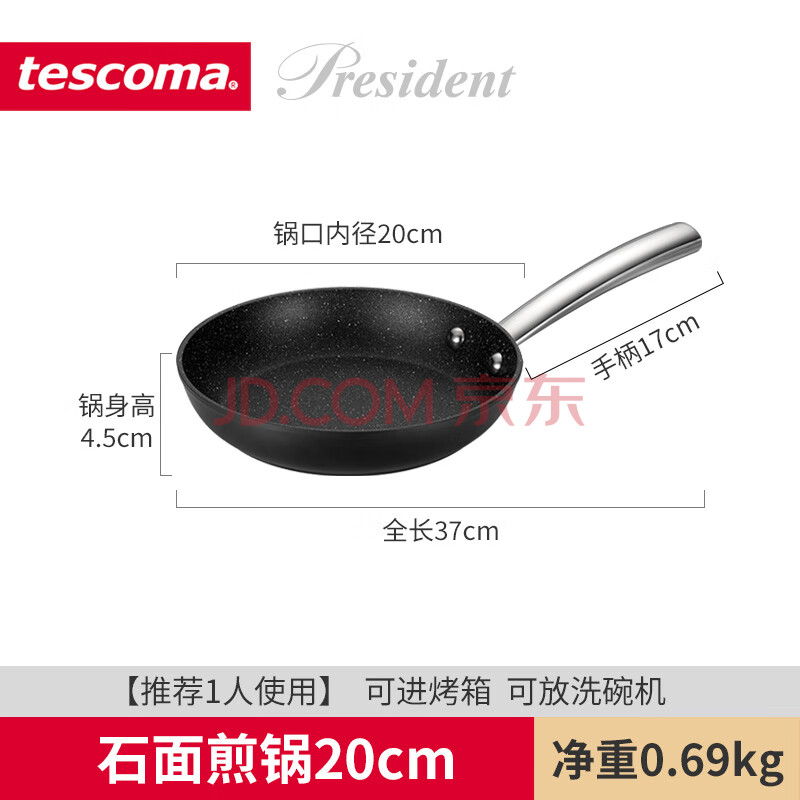 商品相册:tescoma捷克 石面不粘平底煎锅 少油烟煎蛋煎牛排电磁炉燃气灶通用20cm第