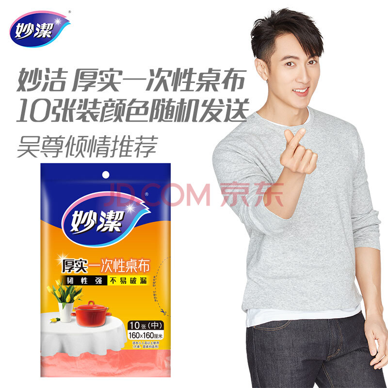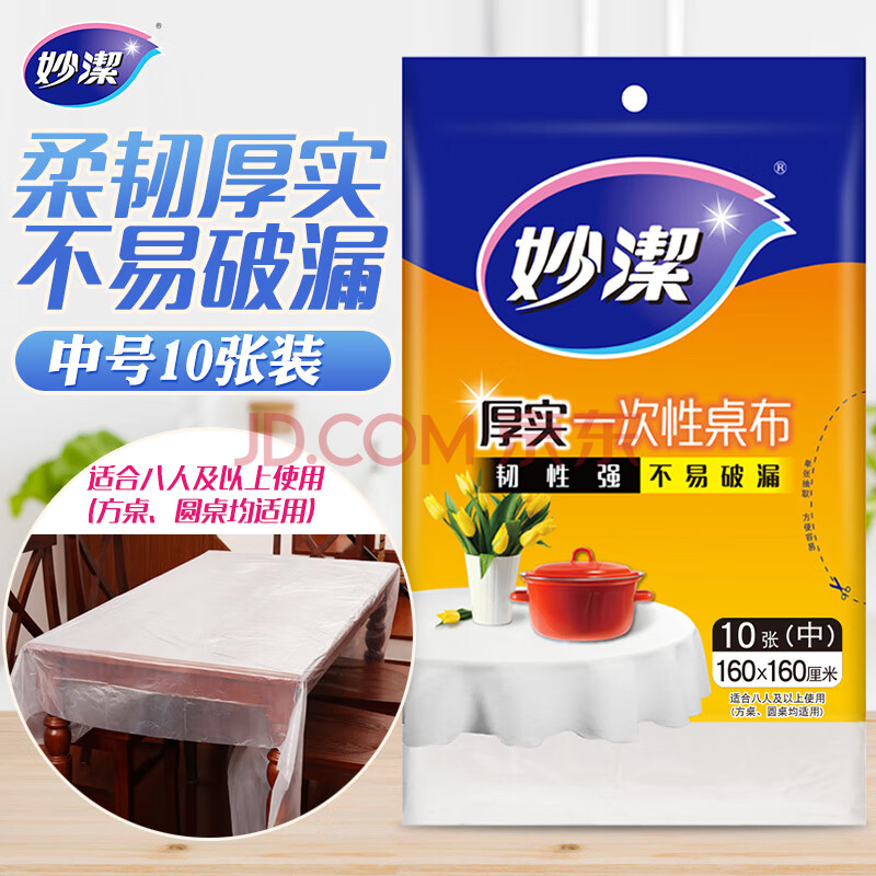 商品相册:妙洁 一次性桌布厚实台布10张装餐桌塑料膜餐垫野餐布中号颜色随机第1张/共6