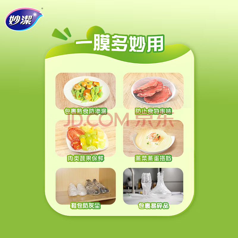 商品相册:妙洁 一次性保鲜膜 粘性升级卫生易撕 小号经济装20米*20cm第