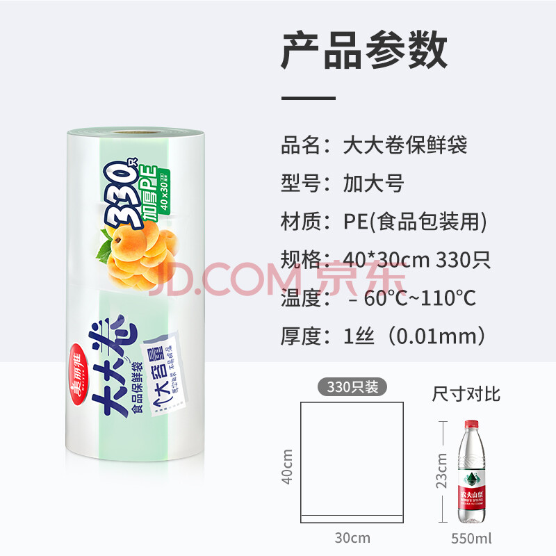 商品相册:美丽雅保鲜袋食品级 加大号330只 加厚可冷冻冰箱食物分装塑料袋子第