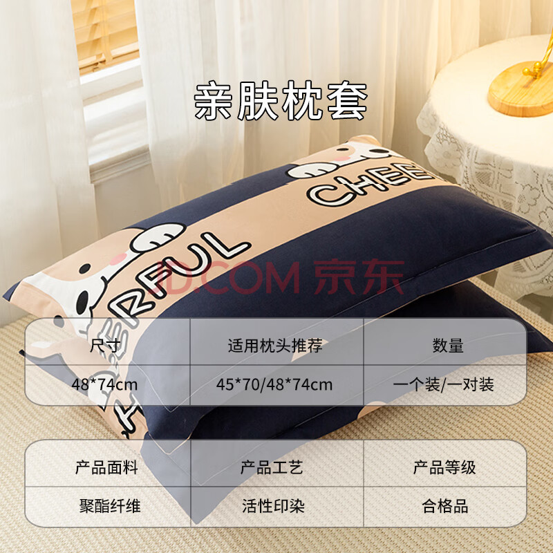 商品相册:艾薇枕头套74*48儿童枕套水洗棉枕头枕套一对 数码狗 48*74cm第